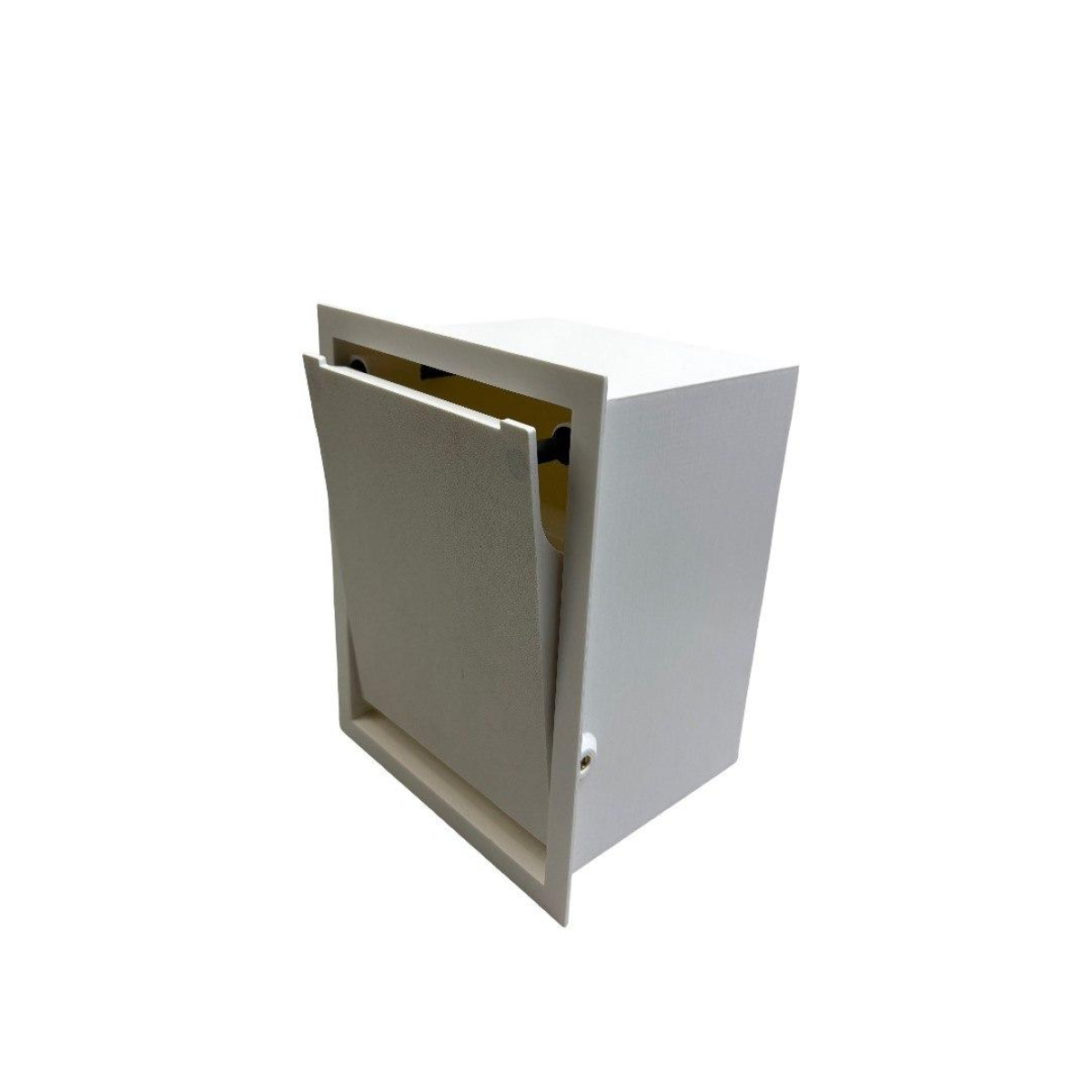«Тримач для туалетного паперу прихованого монтажу» — ідеальне рішення для сучасного санвузла. Його розміри: глибина — 120 мм, ширина — 140 мм, висота — 180 мм. Пристрій монтується заподліцо з плиткою, завдяки чому він практично непомітний і надає акуратний та стильний вигляд. Для надійної фіксації використовуються потужні неодимові магніти, які надійно утримують папір і кришку. У комплекті також є дві наклейки з розмірами для гідрорезу, що спрощує монтаж.